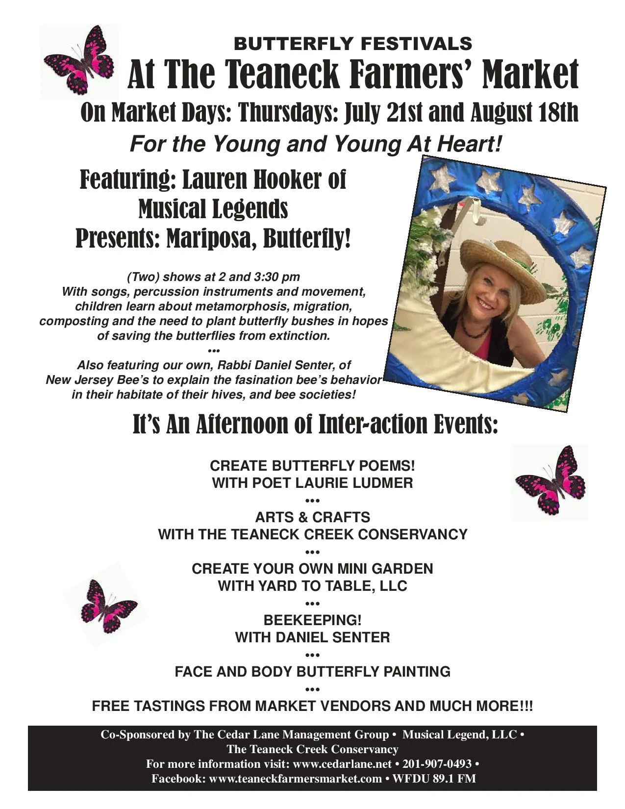 Teaneck Farmer's Market Butterfly Festival Thursday, July 21, 2016 1:00 PM 5:00 PM 13:00 17:00 Teaneck Farmer's Market Garrison Avenue Teaneck, NJ, 07666 United States (map) Google Calendar ICS Check out our table at the weekly Teaneck Farmer's Market, celebrating butterflies.