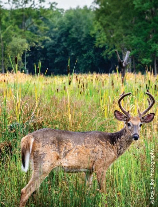A mammal you can spot in woodlands, fields, and even in your neighborhood. White-tailed deer are graceful creatures with a distinctive white underside to their tails, which they flick when alarmed. These quiet, nimble animals move through the underbrush in slow, deliberate steps, pausing to nibble on grass, shrubs, or tree bark. Their sharp, cautious eyes and ears are always alert, and their soft, distant calls can sometimes be heard in the twilight, signaling their presence before they vanish into the woods.