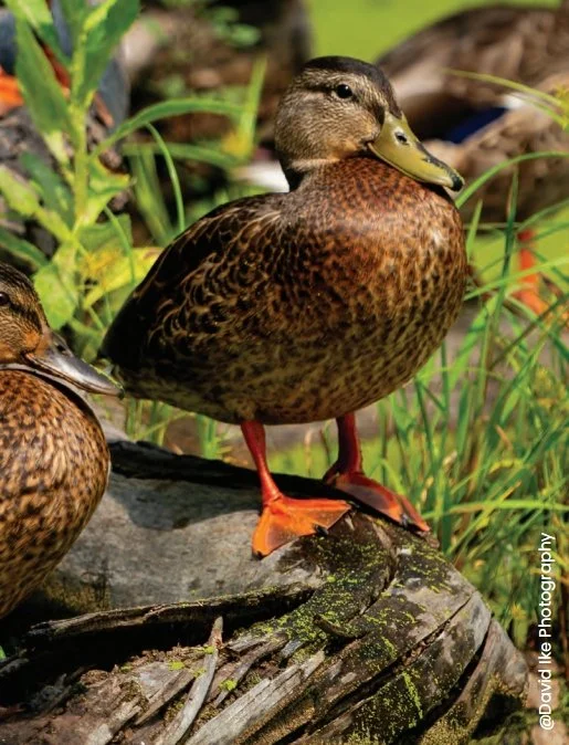 A duck you can spot in ponds, rivers, and lakes, Mallards are vibrant waterfowl with glossy green heads and bright orange bills. These curious birds swim gracefully across the water, dipping their heads below the surface to search for food or gliding through the ripples with slow, steady strokes. Their familiar quacking calls are often heard in the early morning and evening, a cheerful sound as they waddle along the shoreline or take flight in search of new waters.