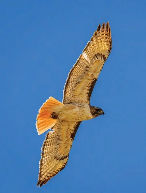 A raptor you can spot soaring high above open fields and roadsides, Red-tailed Hawks are powerful birds of prey with strikingly reddish feathers on their tails. These majestic hunters glide effortlessly on thermal currents, scanning the ground below for small mammals and birds. Their sharp, raspy calls echo across the landscape, often heard as they circle overhead, wings spread wide, on a hunt or as they stake out their territory. Red-tailed Hawks are the most commonly seen hawk in New Jersey.