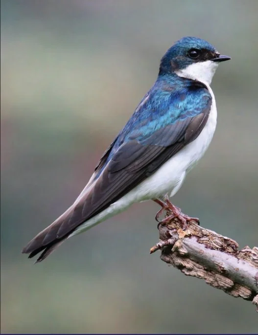 These birds prefer open spaces, Tree Swallows are striking birds with iridescent blue-green feathers and white bellies. These agile birds are often seen swooping and darting through the air, catching insects on the wing. Their cheerful, twittering calls can be heard as they glide over fields, wetlands, and even suburban backyards, where they often nest in cavities or man-made birdhouses.